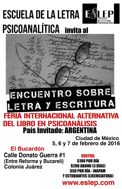 En el marco del ENCUENTRO SOBRE LETRA Y ESCRITURA de “La Feria Internacional alternativa del libro en psicoanálisis” organizado por la ESCUELA DE LA LETRA PSICOANALÍTICA (ESLEP) en la ciudad de México en el mes de febrero de 2016 se presentó el libro de Fernando Quezadas Morales sobre PSICOANÁLISIS Y MÚSICA –invención de articulaciones topológicas y antropológicas-.